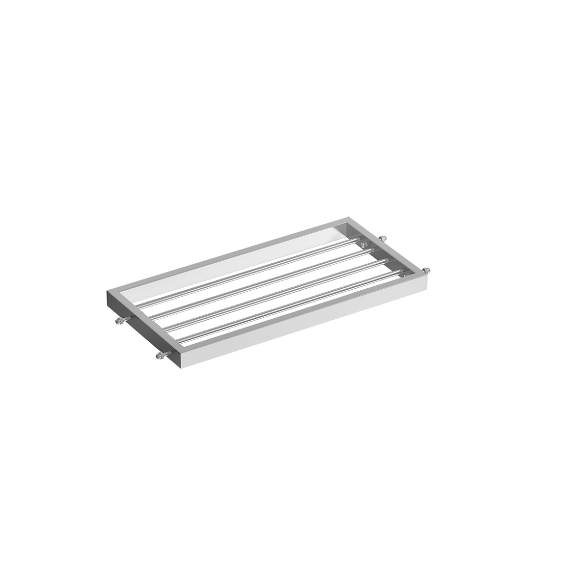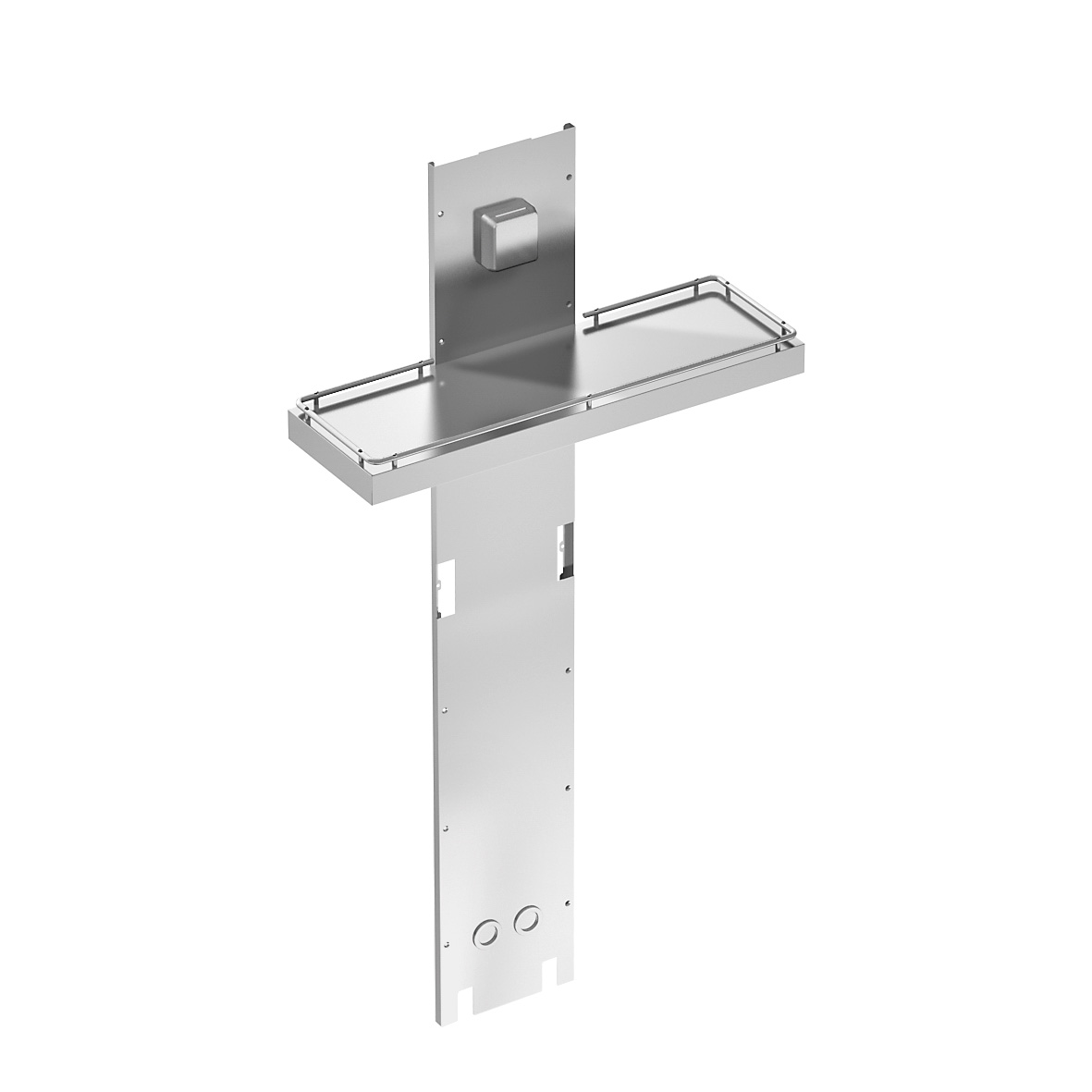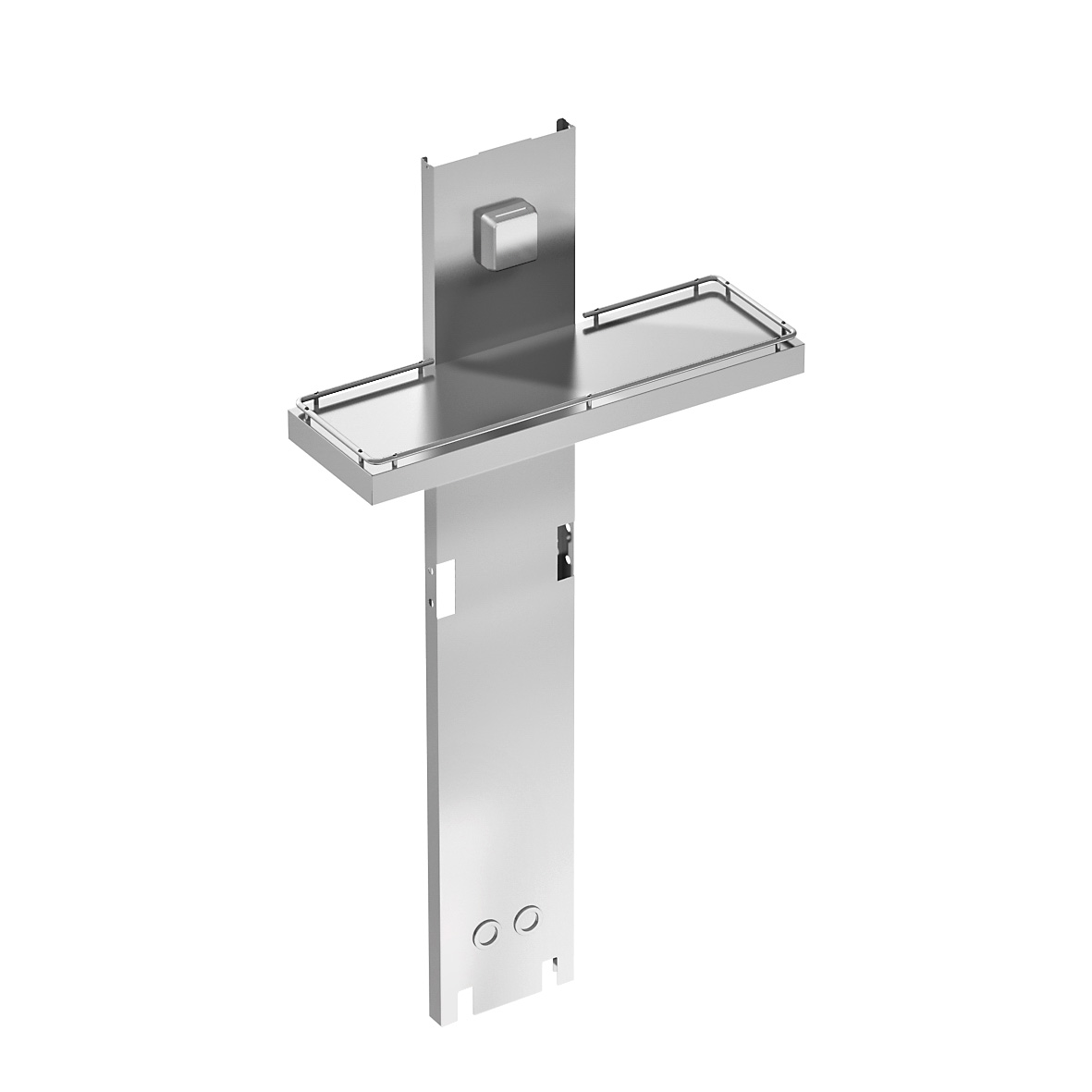 Double front upright with structure made in tubular AISI 304 stainless steel structure, cover made of AISI 304 stainless steel plate, satin finish. Pre-arranged for fixing to floor and to appliance. Two levels ccan be equipped. Delivered on the upper level: 2 grids. If the lower level has NOT accessory, upright must be completed with cover.