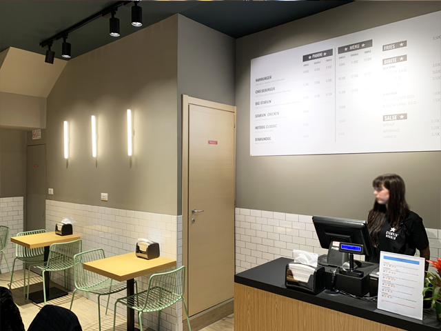 Un perfetto stile fast food americano per Starvin' Burger, hamburgeria nel centro di Novara.